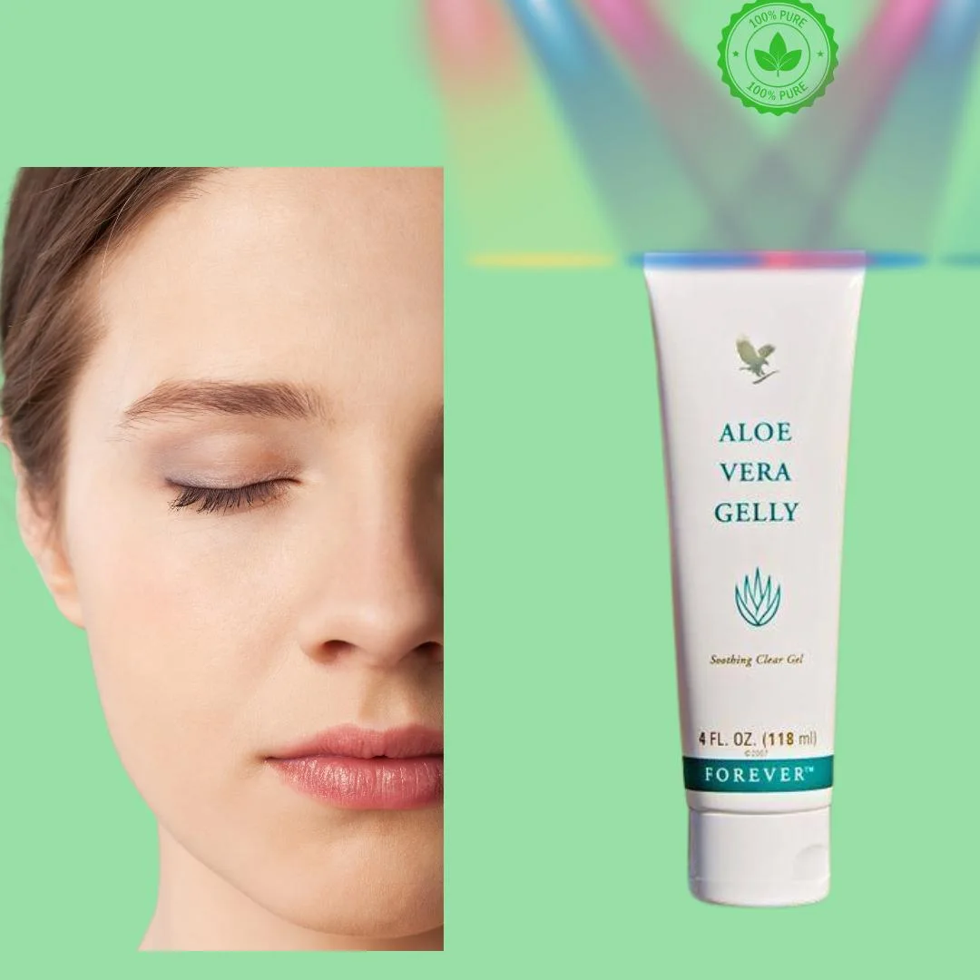 "استرجعي نعومة وراحة بشرتك مع Aloe Vera Gelly من فوريفر! تركيبة طبيعية غنيّة بهلام الألوفيرا النقي، تهدئ البشرة الملتهبة، تعالج الحروق والجروح البسيطة، وترطّب بعمق حتى البشرة الحساسة.