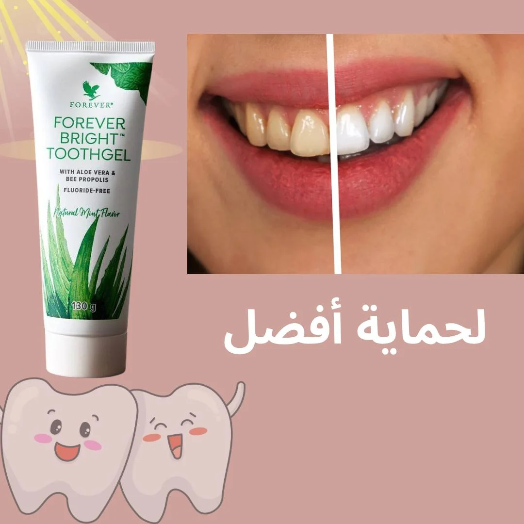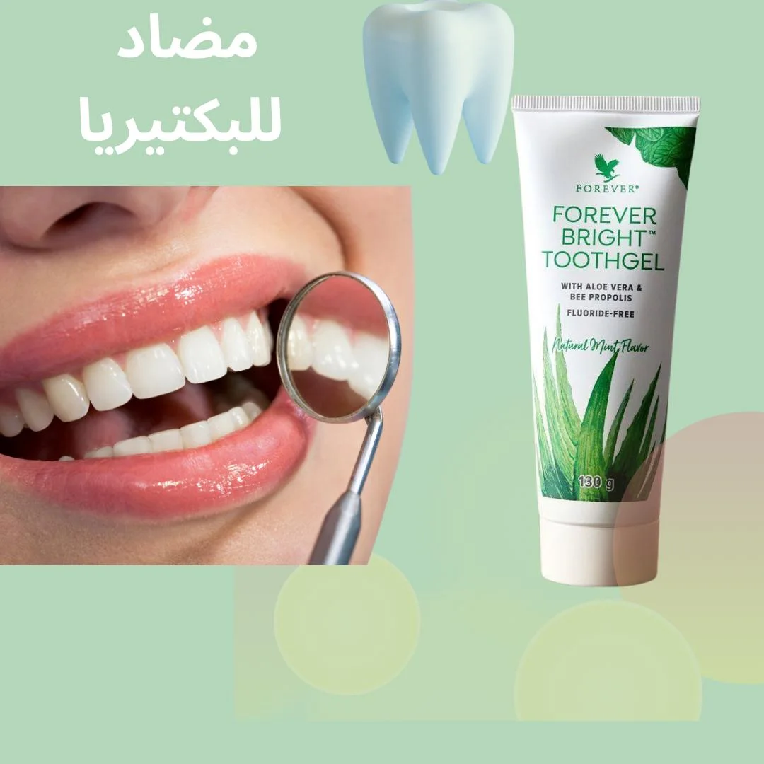كتشف سر الابتسامة الصحية مع Forever Bright Toothgel! تركيبة طبيعية فعالة تجمع بين هلام الألوفيرا وزيت شجرة الشاي لمنحك عناية فائقة بصحة الفم والأسنان.